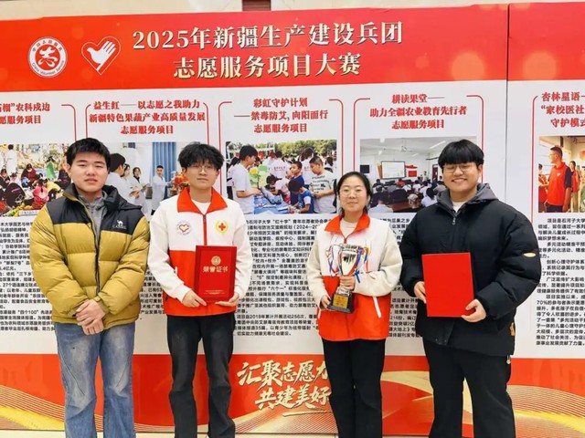 11月9日—12日,新疆生產(chǎn)建設(shè)兵團(tuán)志愿服務(wù)項目大賽決賽在烏魯木齊市圓滿舉行,共計60個項目在決賽中交流展示,學(xué)院“彩虹守護(hù)計劃 —— 禁毒防艾,向陽而行” 項目斬獲銀獎,“杏林星語 —— 數(shù)字化賦能的‘家校醫(yī)社’兒童心理全周期守護(hù)模式” 項目榮獲優(yōu)秀獎。