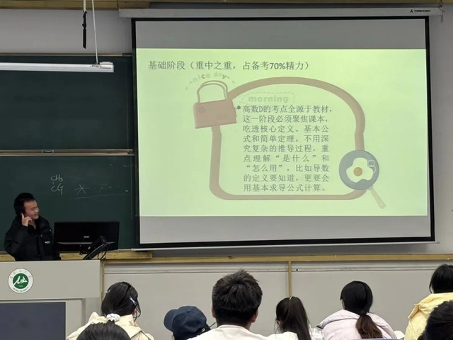 針對大學(xué)數(shù)學(xué)的復(fù)習(xí),王德政梳理出“抓基礎(chǔ)、棄難題、重應(yīng)用”的核心復(fù)習(xí)框架,細(xì)致解析備考中的核心以及痛點(diǎn),他特別指出,規(guī)律作息,拒絕熬夜是保持清晰思維、提升復(fù)習(xí)效率的重要方式。