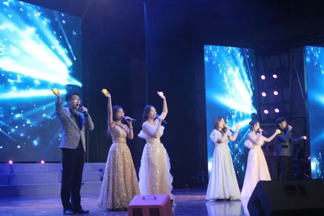 歌曲串燒《穿越人海,為愛期待》在浪漫燈光下唱響關(guān)于友誼、愛情與理想的青春絮語。