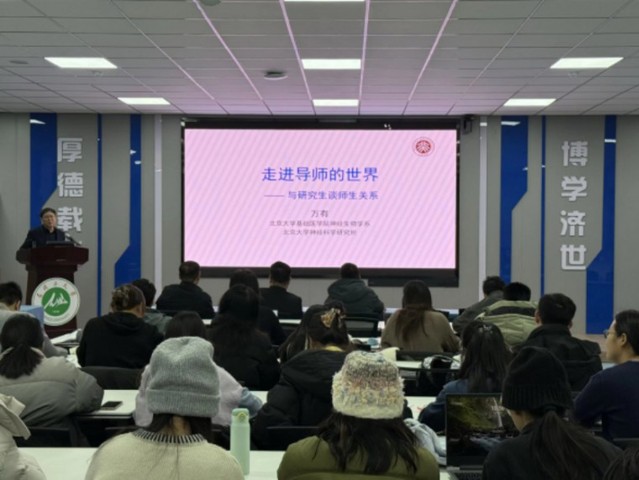 12月7日上午,醫(yī)學(xué)院基礎(chǔ)醫(yī)學(xué)博士研究生《生命科學(xué)進(jìn)展》課程在杏三324舉行。本次課程特邀國務(wù)院學(xué)位委員會(huì)基礎(chǔ)醫(yī)學(xué)學(xué)科評(píng)議組成員兼召集人、教育部與國家衛(wèi)生健康委員會(huì)神經(jīng)科學(xué)重點(diǎn)實(shí)驗(yàn)室主任、北京大學(xué)神經(jīng)科學(xué)研究所所長萬有教授,為學(xué)院師生帶來題為“走進(jìn)導(dǎo)師的世界——與研究生談師生關(guān)系”的專題講座。講座旨在搭建師生間深度溝通的橋梁,消除隔閡與誤解,引導(dǎo)研究生與導(dǎo)師共同探索學(xué)術(shù)道路上協(xié)作共進(jìn)的藝術(shù)。醫(yī)學(xué)院、公共衛(wèi)生學(xué)院黨委書記張青、醫(yī)學(xué)院院長馬克濤、副院長王良海參加本次講座,講座還吸引了各學(xué)位點(diǎn)青年導(dǎo)師及研究生到場(chǎng)聆聽。