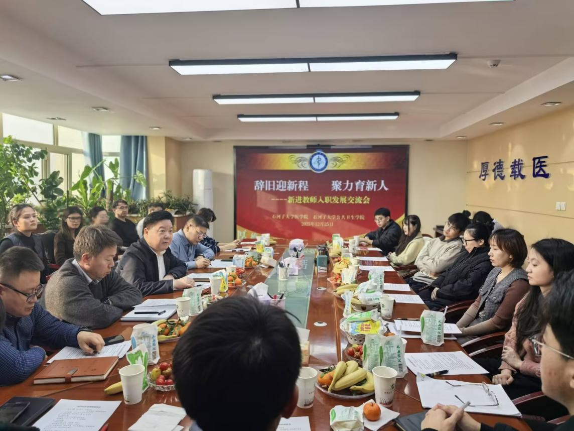 為切實關(guān)懷新進(jìn)教師成長,助力其迅速融入學(xué)院發(fā)展大局,精準(zhǔn)化解教學(xué)、科研及生活中的實際難題,12月25日,醫(yī)學(xué)院組織召開了2024年和2025年入職教師座談會。學(xué)院全體領(lǐng)導(dǎo)班子成員與兩屆新進(jìn)教師齊聚一堂,通過面對面交流共商發(fā)展、共解難題,會議氛圍熱烈融洽。