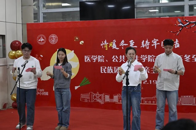 冬至陽生,歲回律轉(zhuǎn)。為傳承冬至民俗文化,營造溫馨和諧的節(jié)日氛圍,推動(dòng)鑄牢中華民族共同體意識,12月19日18點(diǎn),醫(yī)學(xué)院、公共衛(wèi)生學(xué)院在南區(qū)杏林餐廳2樓成功舉辦“情暖冬至 鑄牢團(tuán)結(jié)”2025年冬至民族團(tuán)結(jié)一家親主題活動(dòng)。