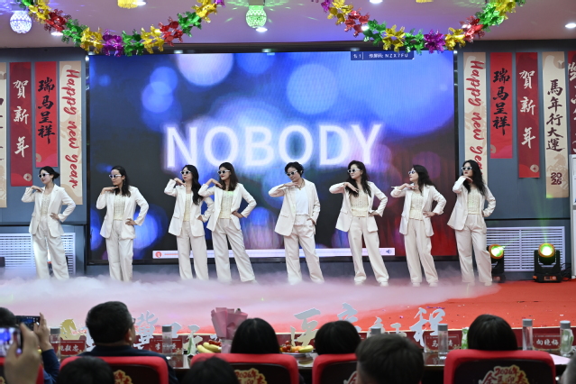 公共衛(wèi)生學院老師們演繹的舞蹈串燒《男團女團迎春風》,復古與現(xiàn)代交融,點燃了現(xiàn)場氣氛。